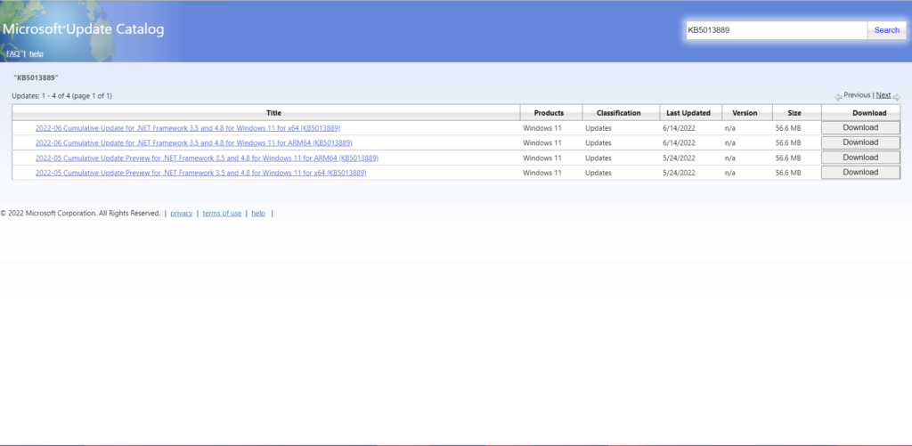 4.Busque la actualización que coincida con su actualización de Windows y que no pueda descargar.