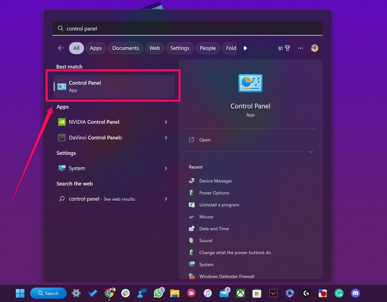 1.Abre elPanel de controlventana en su dispositivo Windows 11.