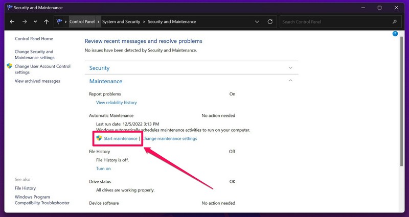 5.Ahora, haga clic en elIniciar mantenimientobotón.