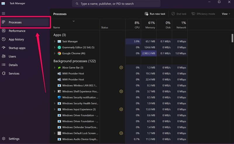 1.Utilice Ctrl + Shift + Esc para invocar elAdministrador de tareasventana en su PC o computadora portátil con Windows 11.