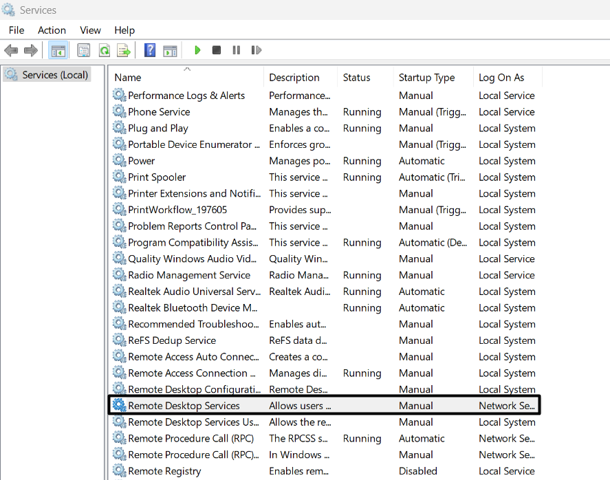 1.Abre elEjecutar utilidad, tiposervicios.mscen su cuadro de búsqueda y presioneIngresarpara abrir elAplicación de servicios.
