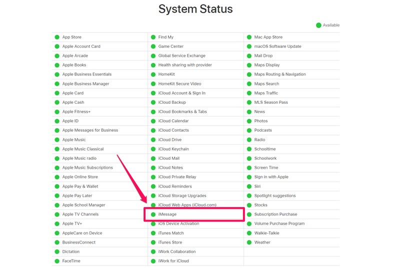 3. Compruebe si el servidor iMessage está en línea