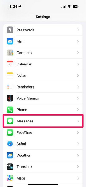 Puede seguir los pasos a continuación para asegurarse de que la opción Filtrar remitentes desconocidos esté desactivada para iMessage en su iPhone: