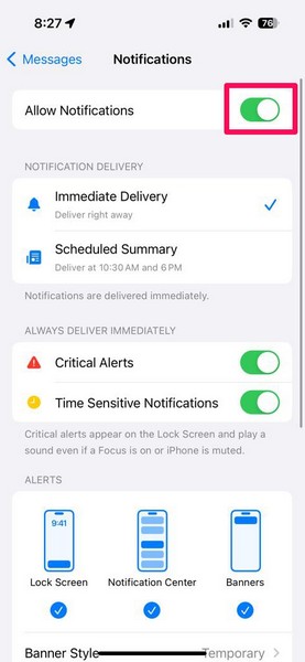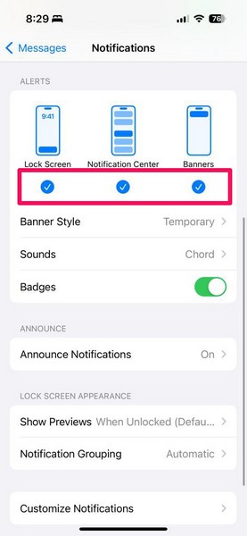 Una vez que realice todos estos cambios en la configuración de notificaciones de iMessage en su iPhone, el problema de que las notificaciones de iMessage no funcionan debería resolverse.