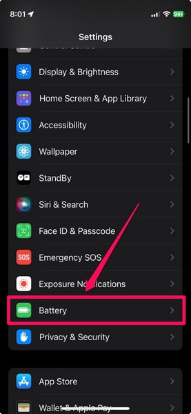 Si ese es realmente el caso en su iPhone que está causando que las notificaciones de iMessage no funcionen correctamente, puede seguir los pasos a continuación para desactivar el modo de bajo consumo en su dispositivo: