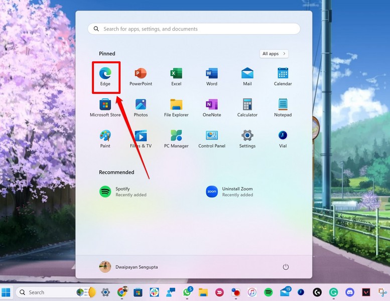 1.LanzamientoBorde de Microsoften su PC o computadora portátil con Windows 11.