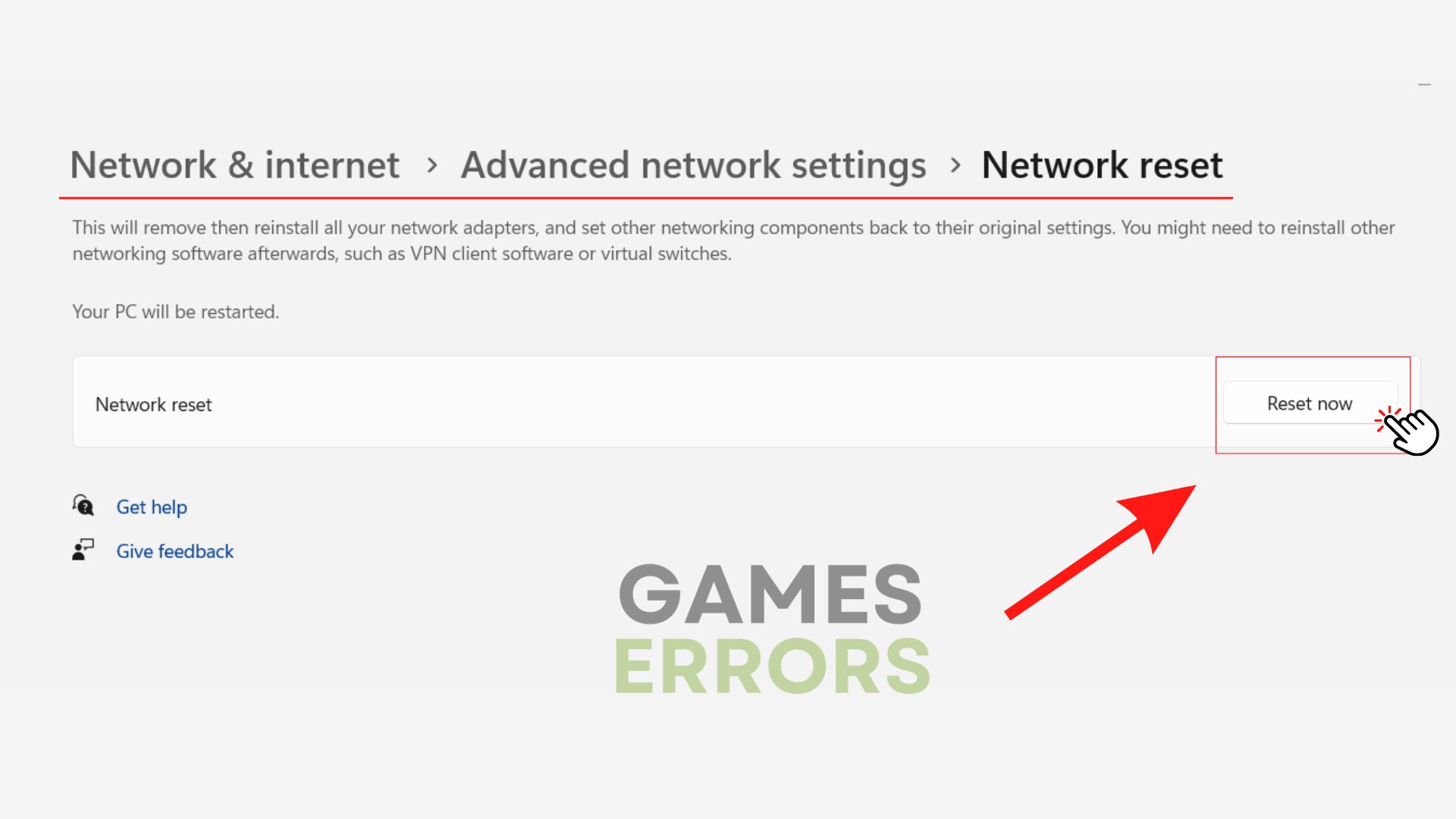 - Hacer clic enRestablecer la configuración de redy reinicia tuORDENADOR PERSONAL.