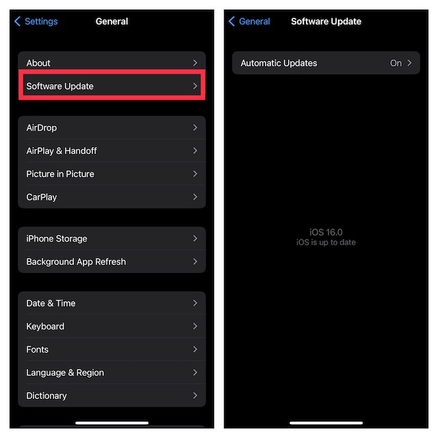 - Abra la aplicación Configuración -> General -> Actualización de software -> Descargue e instale la última versión de iOS.