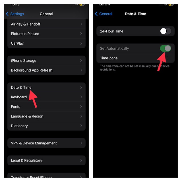 2.Seleccione elFecha y horasección y active la palanca paraEstablecer automáticamente.