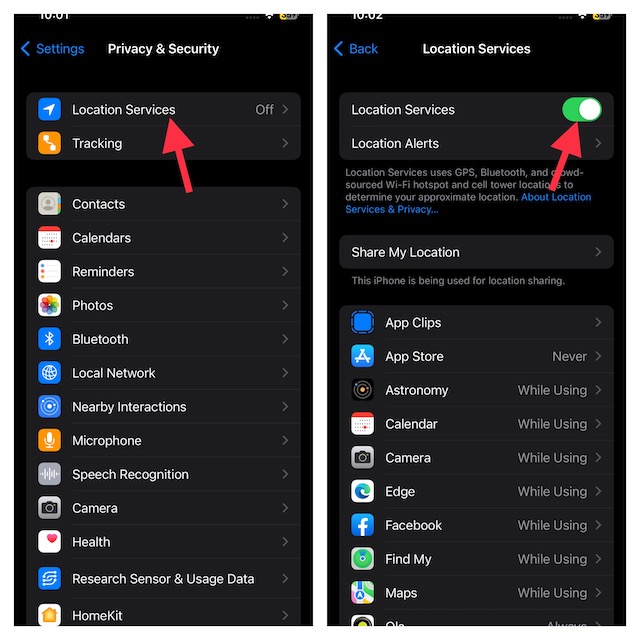 2. Asegúrese de que los servicios de ubicación estén habilitados