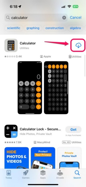 6. Reinstale la aplicación Calculadora o Notas en su iPhone