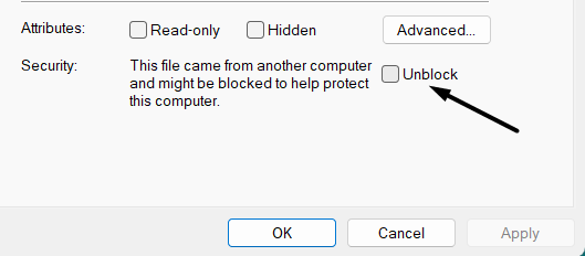 3.Asegúrese de que la casilla de verificación junto aDesatascarbajo elSeguridadLa sección no está marcada.