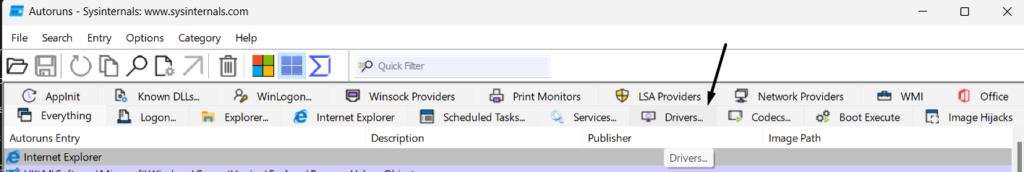 3.Abra la utilidad Autoruns en su PC con Windows 11 con derechos de administrador y navegue hastaConductoressección.