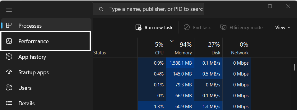 5.Deshabilite todos los procesos que no sean de Microsoft en elProcesossección en la utilidad Administrador de tareas.
