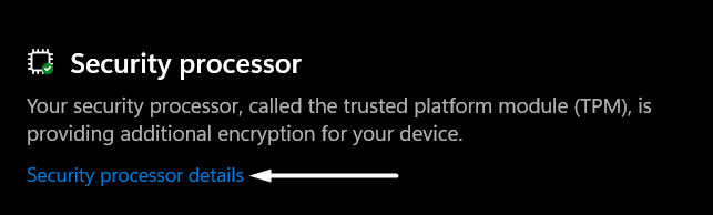 2.En elSeguridad del dispositivosección, haga clic enDetalles del procesador de seguridadpara pasar a esa sección.
