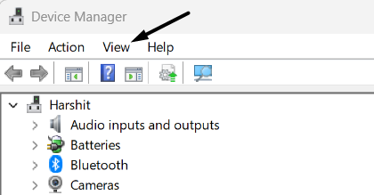 1.Abre elAdministrador de dispositivosen su PC con Windows 11 y haga clic enVistaen el menú de la cinta superior.
