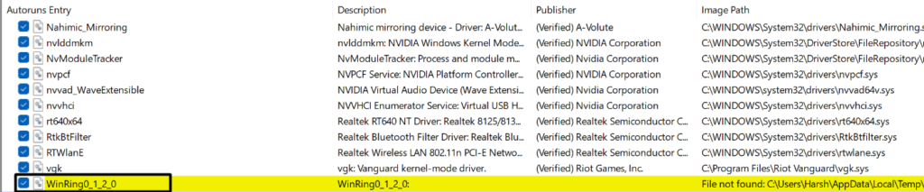4.Busque los controladores resaltados en amarillo y Desmarque las casillas junto a ellos para desactivarlos.