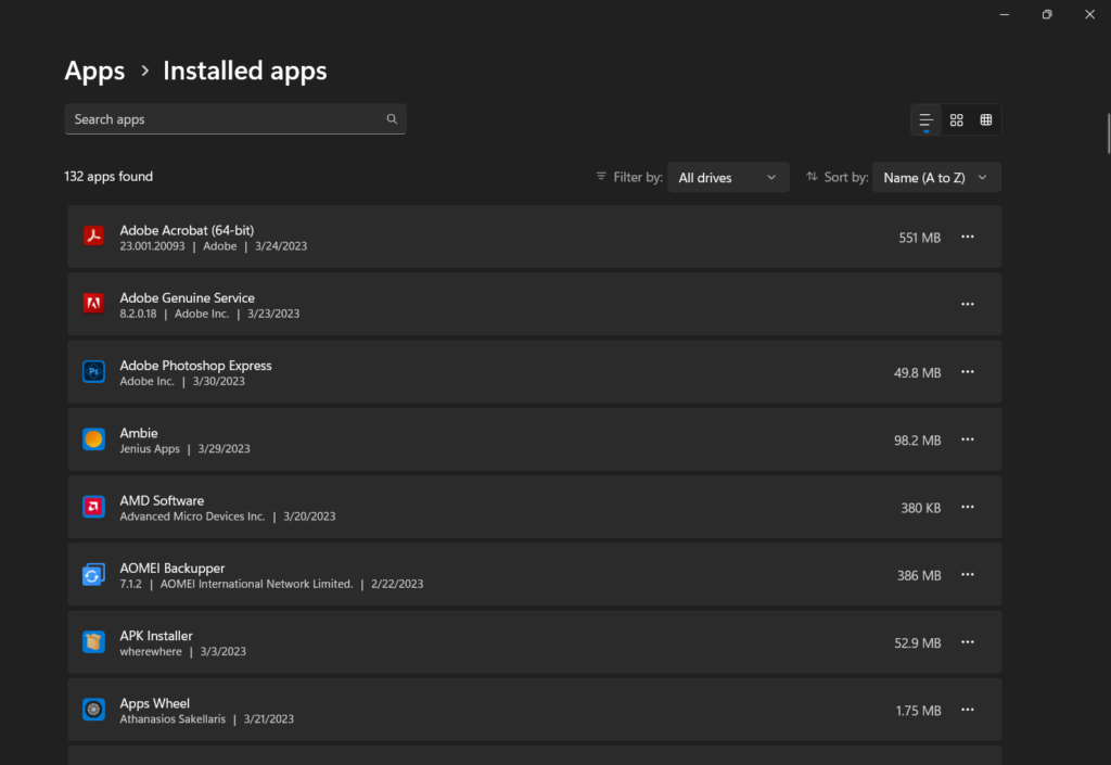3.Una vez encontrado, haga clic en eltres puntos (…)al lado del programa y seleccioneDesinstalardesde el menú desplegable.