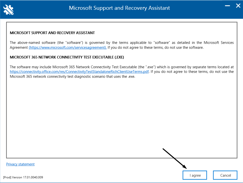 3.Abra el Asistente de recuperación y soporte de Microsoft en su PC y acepte los términos y condiciones.