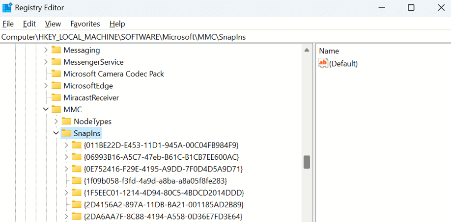 HKEY_LOCAL_MACHINESOFTWAREMicrosoftMMCSnapIns