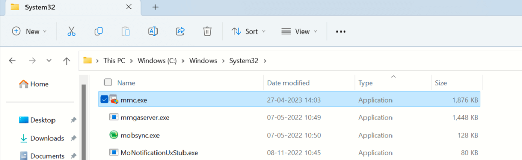 Un método para corregir el error MMC no pudo crear el complemento en Windows 11 es cambiar el nombre del archivo ejecutable MMC actual. No se preocupe, ya que Windows está programado para generar un nuevo archivo MMC.exe si el anterior desaparece. Aquí están los pasos: