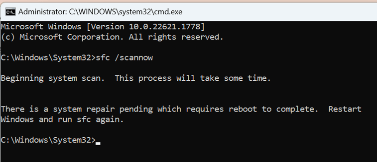 La última opción para corregir este error es ejecutar un análisis de los archivos del sistema y comprobar si hay archivos corruptos. Estos son los pasos para hacerlo: