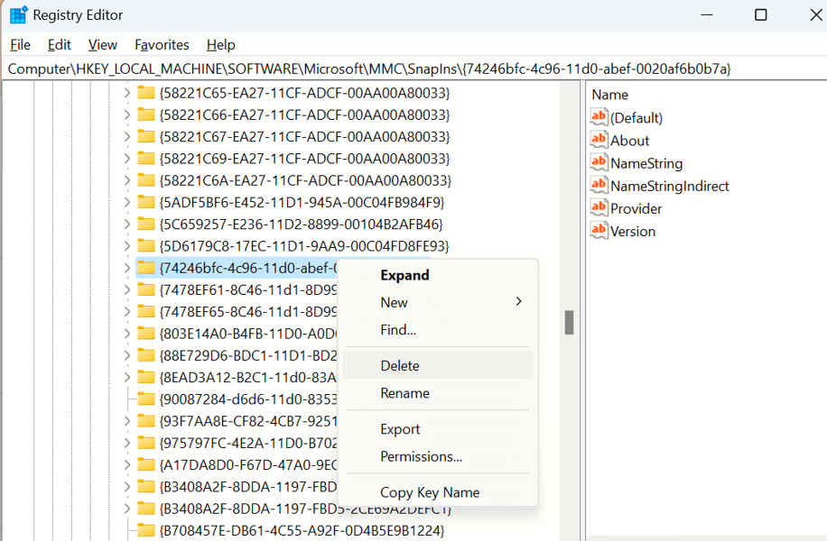 Es posible que se enfrente al error MMC no pudo crear el complemento en Windows 11 si las entradas del Registro están rotas o son defectuosas. Estos son los pasos para solucionar este problema: