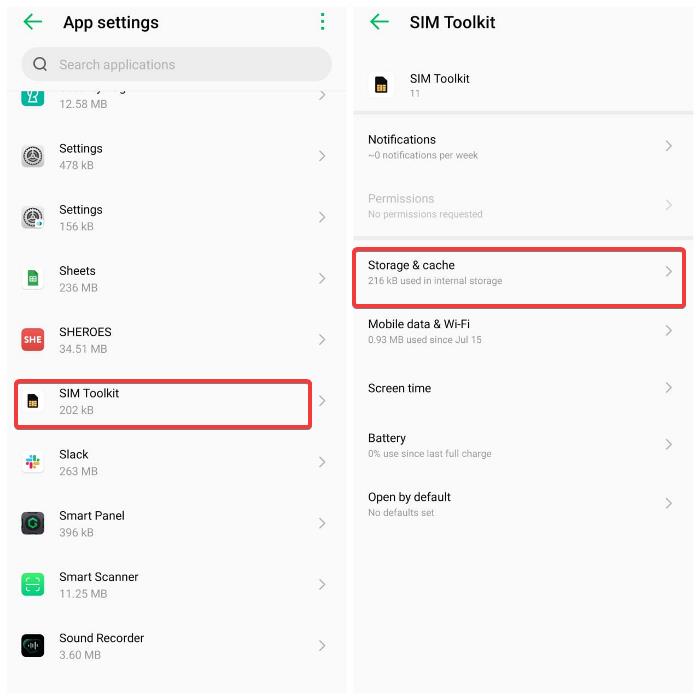 5.Ahora, borre los datos y el caché de SIM Toolkit.