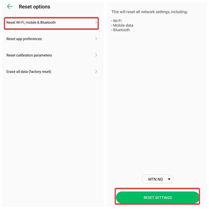 Como se indicó anteriormente, el error No registrado en la red puede deberse a una configuración de red incorrecta en su teléfono. En este caso, la mejor solución será restablecer la configuración de red para que la configuración de red vuelva a su condición normal. A continuación se explica cómo restablecer la configuración de red en Android: