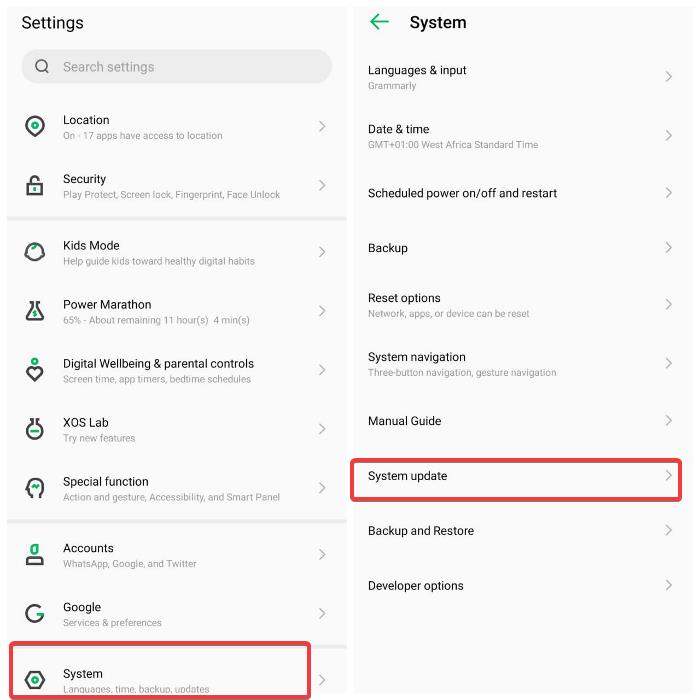 Este problema también puede deberse al hecho de que su sistema operativo Android está desactualizado y su teléfono no funciona correctamente como resultado de eso. En este caso, busque actualizaciones en su teléfono e instálelas si las hay.
