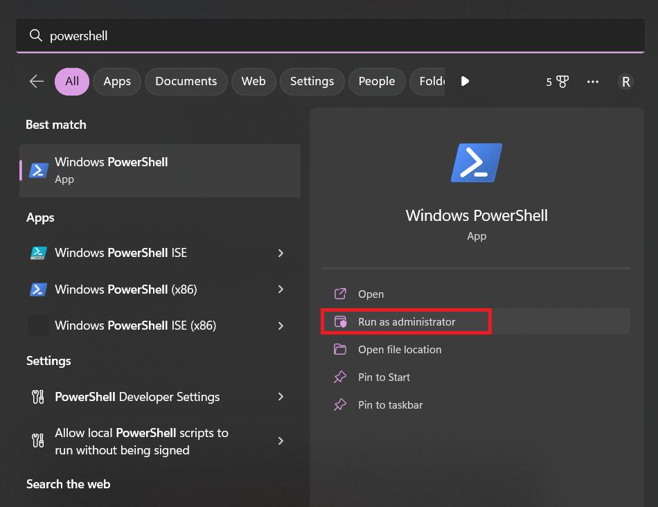 Paso 3:En la ventana de PowerShell, escriba el siguiente comando y presione Enter para ejecutarlo: