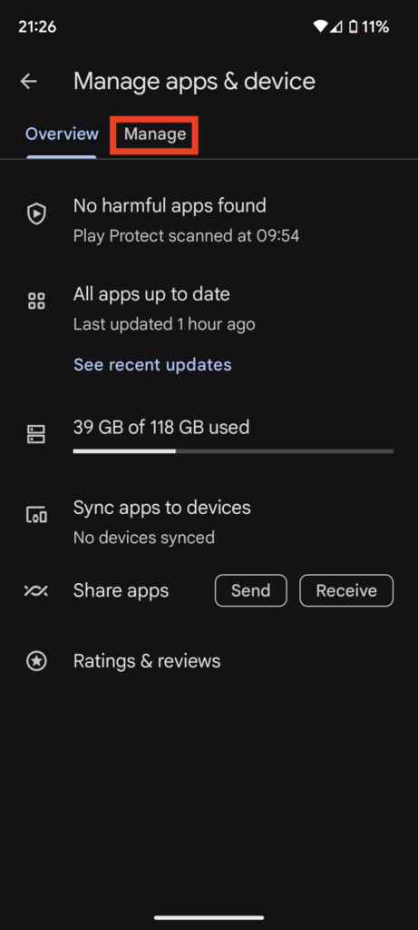 2.Hacer clic enAdministrar aplicaciones y dispositivos.