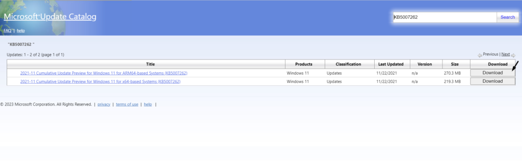 1.Hacer clicaquípara pasar a laCatálogo de actualizaciones de Microsoftsitio web oficial en su navegador web.