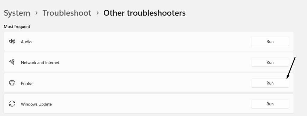2.En elSolucionar problemasventana, elijaOtros solucionadores de problemasy buscarImpresorabajoMás frecuente.