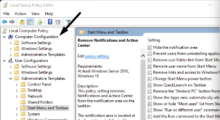 Algunos usuarios sugirieron que configurar elEliminar notificaciones y centro de actividadespolítica paraNo configuradotambién puede eliminar el problema. Entonces, intente lo mismo siguiendo los pasos a continuación y verifique si soluciona el problema: