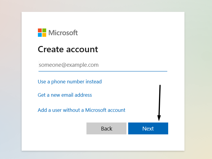 5.Una vez hecho esto, haga clic en elPróximoen la esquina inferior derecha del mensaje para crear una nueva cuenta de usuario.