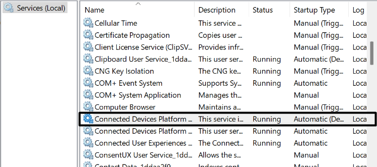 Al igual que el Explorador de Windows, el Servicio de plataforma de dispositivos conectados es un servicio crucial de Windows que ayuda a que la Configuración rápida funcione correctamente. Teniendo esto en cuenta, te sugerimosreinicie el servicio de plataforma de dispositivos conectadospara actualizarlo y comprobar si soluciona el problema.