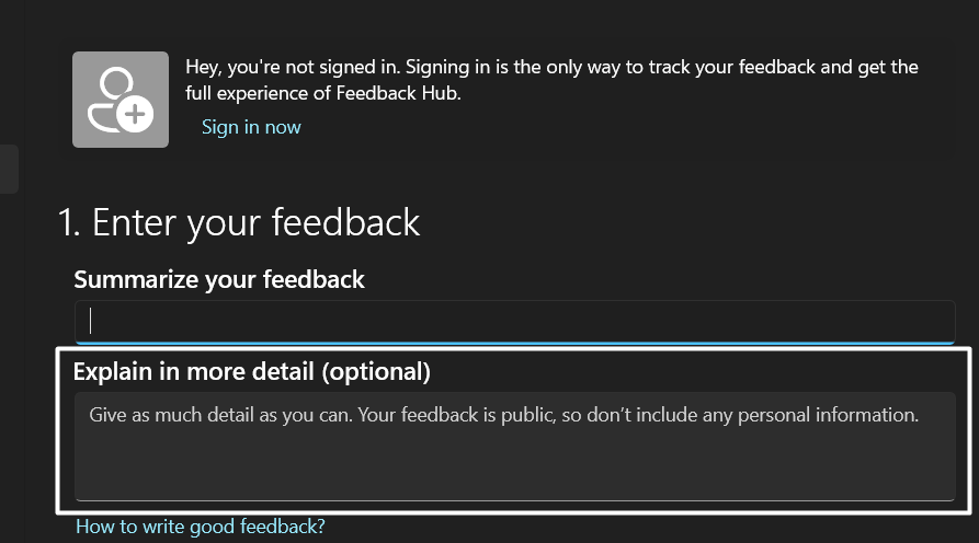 Puede seguir los pasos mencionados para saber cómo informar este problema en el Centro de comentarios:
