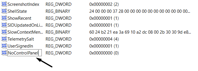 5.TipoSin panel de controlen elNombre del valor:campo de texto en elValor DWORD (32 bits)ventana.
