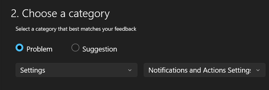 5.Seleccione elProblemabotón de opción debajoSeleccione la categoría que mejor se adapte a sus comentarios.