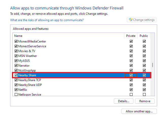 Siga estos pasos para permitir la aplicación Quick Share de Google a través del Firewall de Windows Defender en Windows 11: