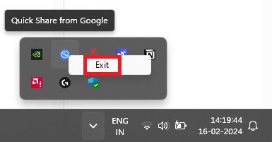 Siga estos pasos para reiniciar la aplicación Quick Share de Google en su PC: