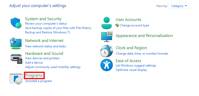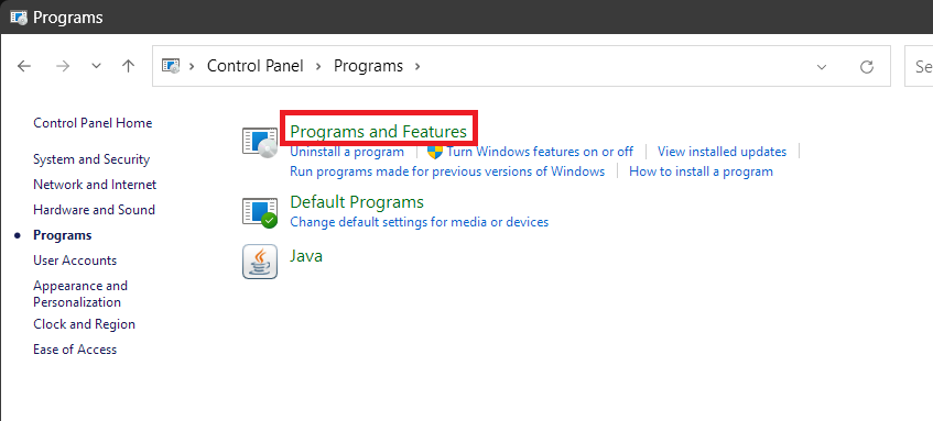 3.Ahora, abre elProgramas y característicassección.