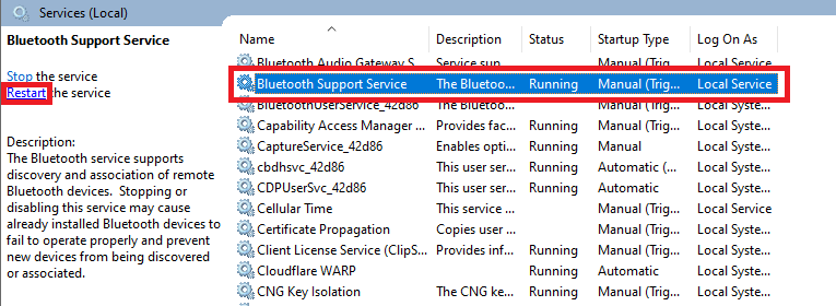 7. Reinicie los servicios Bluetooth