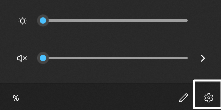 2.Una vez que el Se abre el Centro de acción rápida, haga clic en elicono de engranajeen el borde inferior derecho de la ventana emergente.