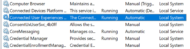 5. Reinicie el servicio de telemetría y experiencias de usuario conectado