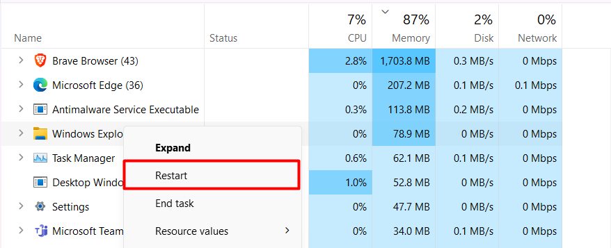 Una vez que haya reiniciado la tarea del Explorador de Windows, reinicie su PC y verifique el estado del problema.