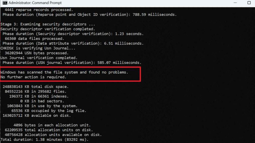 - Cuando recibe un mensaje indicando"Windows escaneó el sistema de archivos y no encontró problemas".indica que el problema no está relacionado con el hardware.
