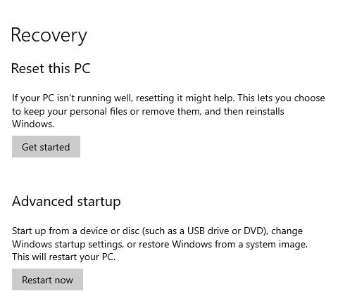 Paso 1:Acceda a Configuración > Actualización y seguridad > Recuperación.
