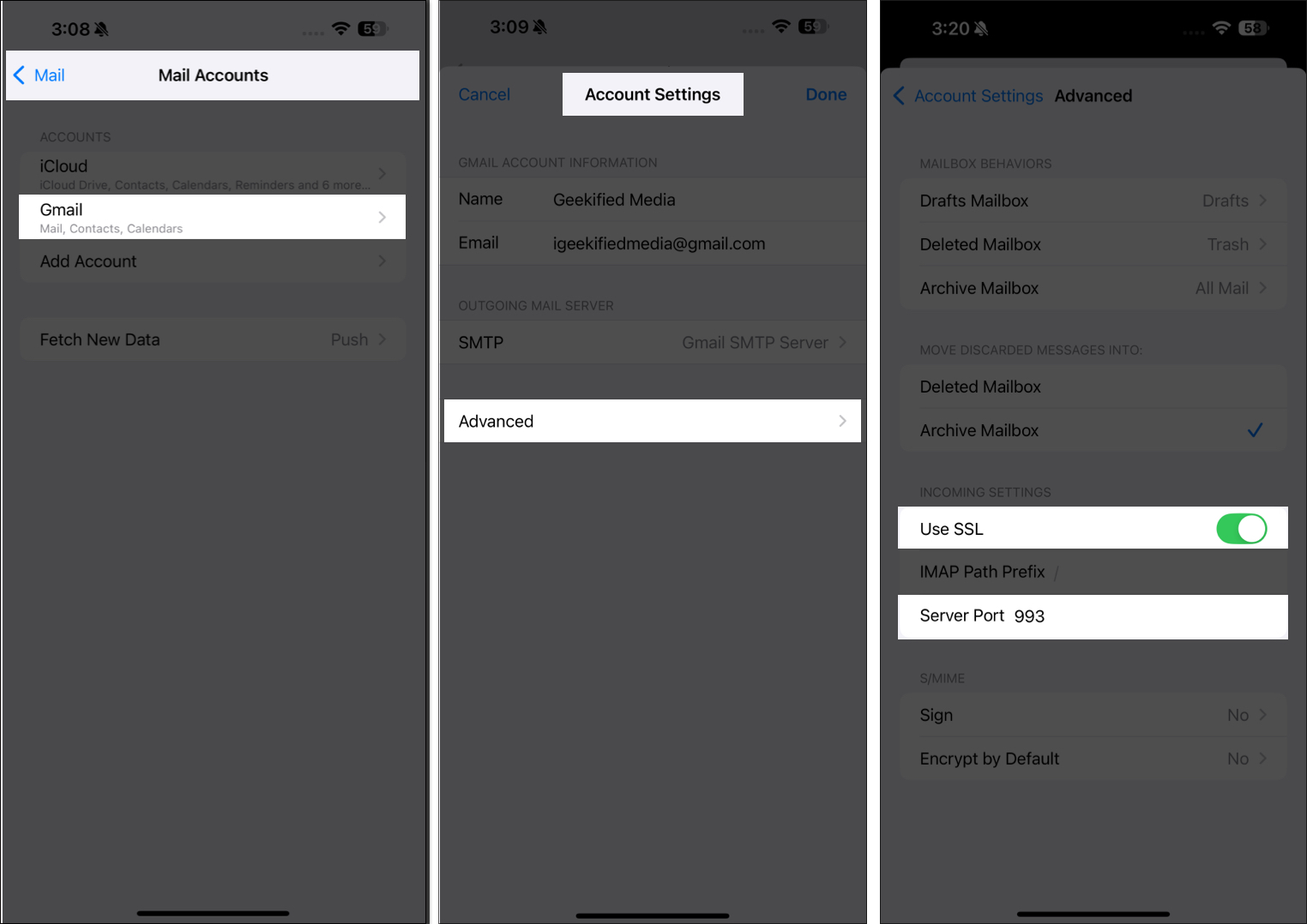 Una configuración de correo incorrecta o desactualizada puede impedir que su iPhone se conecte al servidor de correo electrónico. Por lo tanto, debe asegurarse de que la configuración de su correo sea correcta y de que sus nuevos correos electrónicos se recuperen en su iPhone desde los servidores automáticamente.